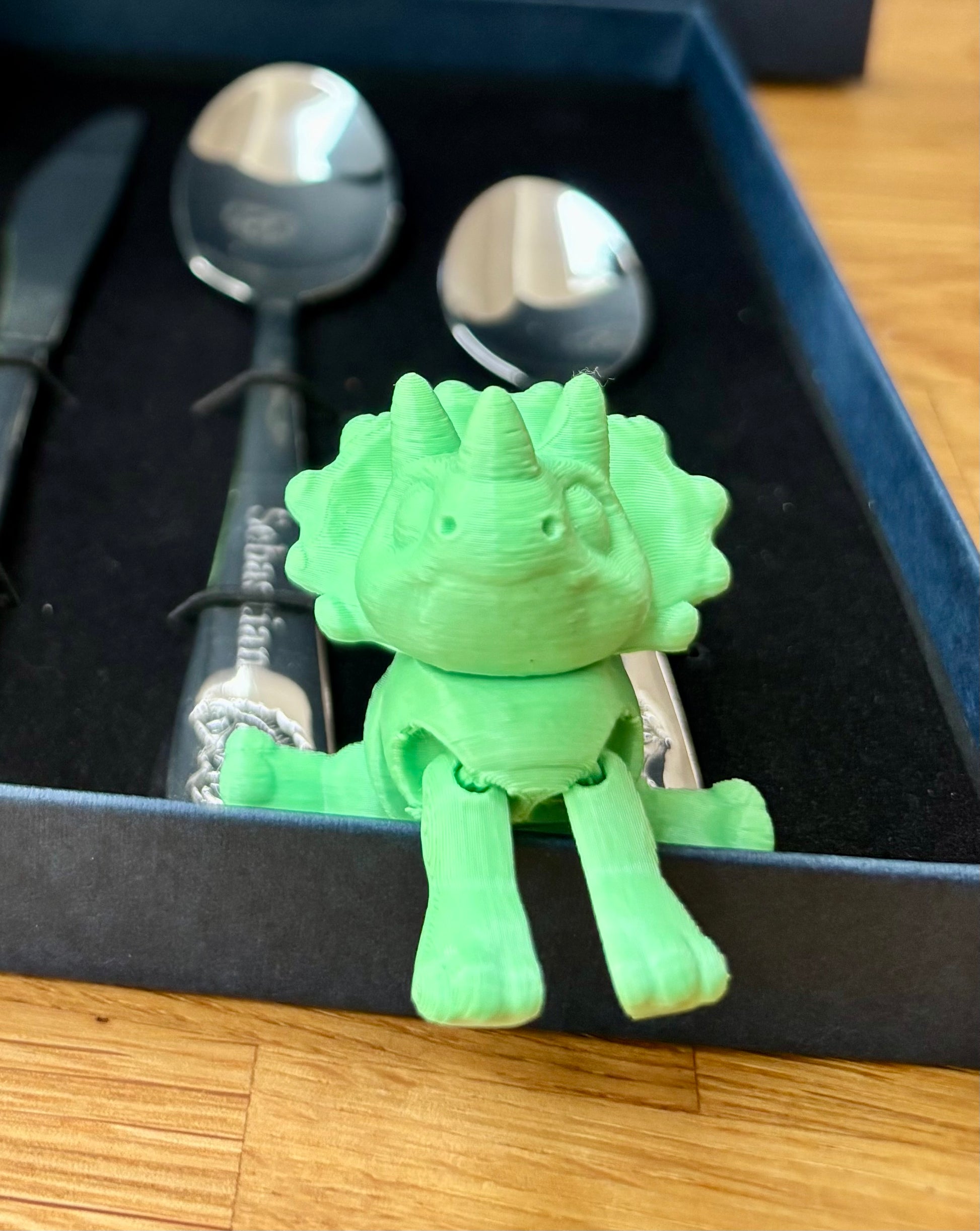 Comes with a FREE cute 3D printed (by Ben himself!) triceratops toy (UK customers only)